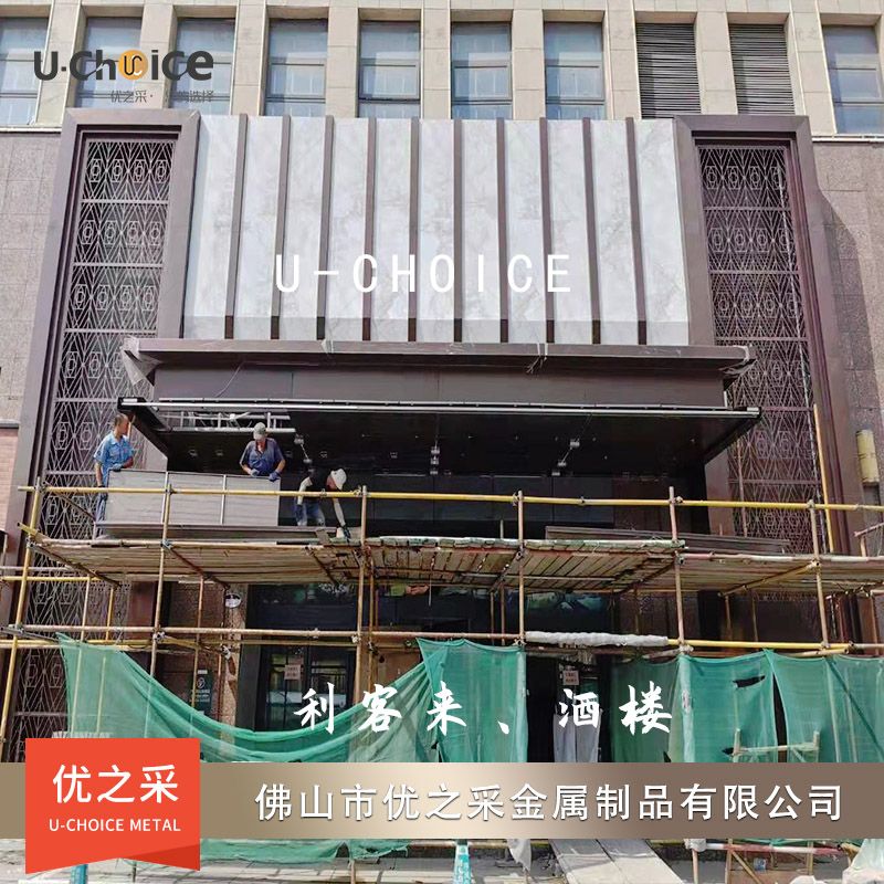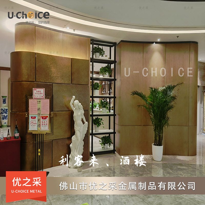 項目材料:不銹鋼蜂窩板,青古銅不銹鋼板,不銹鋼圓弧包柱,拉絲不銹鋼板