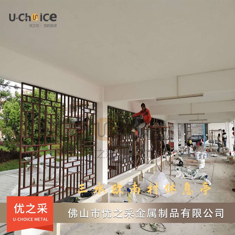 項目名稱:歐南村休息亭不銹鋼屏風安裝